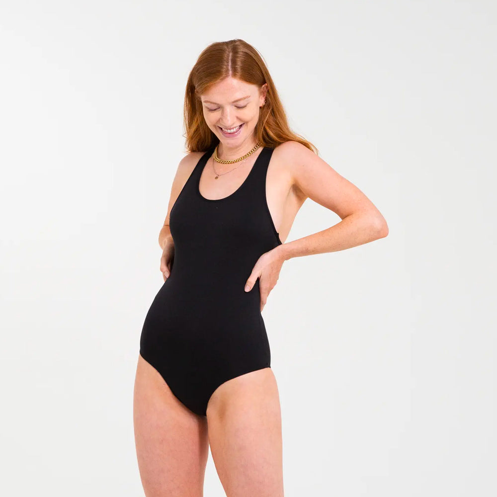 Feel comfortable and confident during menstruation whether you're swimming in the sea, sunbathing at the pool or doing vigorous laps in water sports - this black Period Swimsuit by WUKA offers fantastic protection during the lighter flow days of your period.