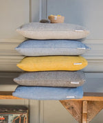 The wool yarn used to spin this Respiin cushion cover is made from recycled wool clothing. Unwanted clothing arrives at the factory in India, and is sorted into wool/wool mix clothing only. Then the clothing is cleaned, broken down into fibres, spun into yarn, before being woven into the fabric needed to create this luxurious cushion cover. This makes it a wonderfully eco-friendly gift for someone, or for anyone looking for green homeware.