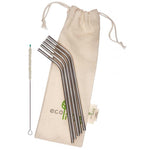Ecoliving Stainless Steel Bent Drinking Straw and Pouch - 5 Pack