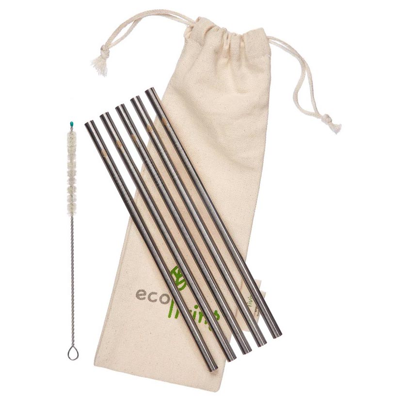 Ecoliving Stainless Steel Straight Drinking Straw and Pouch - 5 Pack