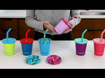 A pack of 2 silicone lids with reusable straws for the Kid Kanteen 10oz Kid Cup, splash and spill proof lids for toddlers and children. The short stainless steel straws have soft, flexible silicone tips, making them comfortable and safe on children's developing palates.