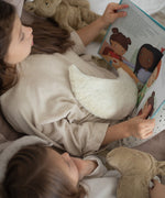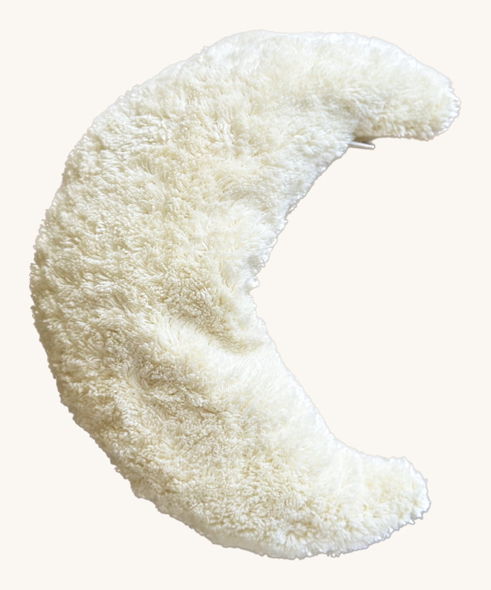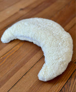 Create a dreamy atmosphere with this plush Cuddly Cherry Pit Moon, a soft and snuggly plush white heatable cushion made from GOTS organic cotton with an organic cotton filling. The removable heat cushion is filled with natural cherry stones to create a soothing heated moon-shaped pillow.