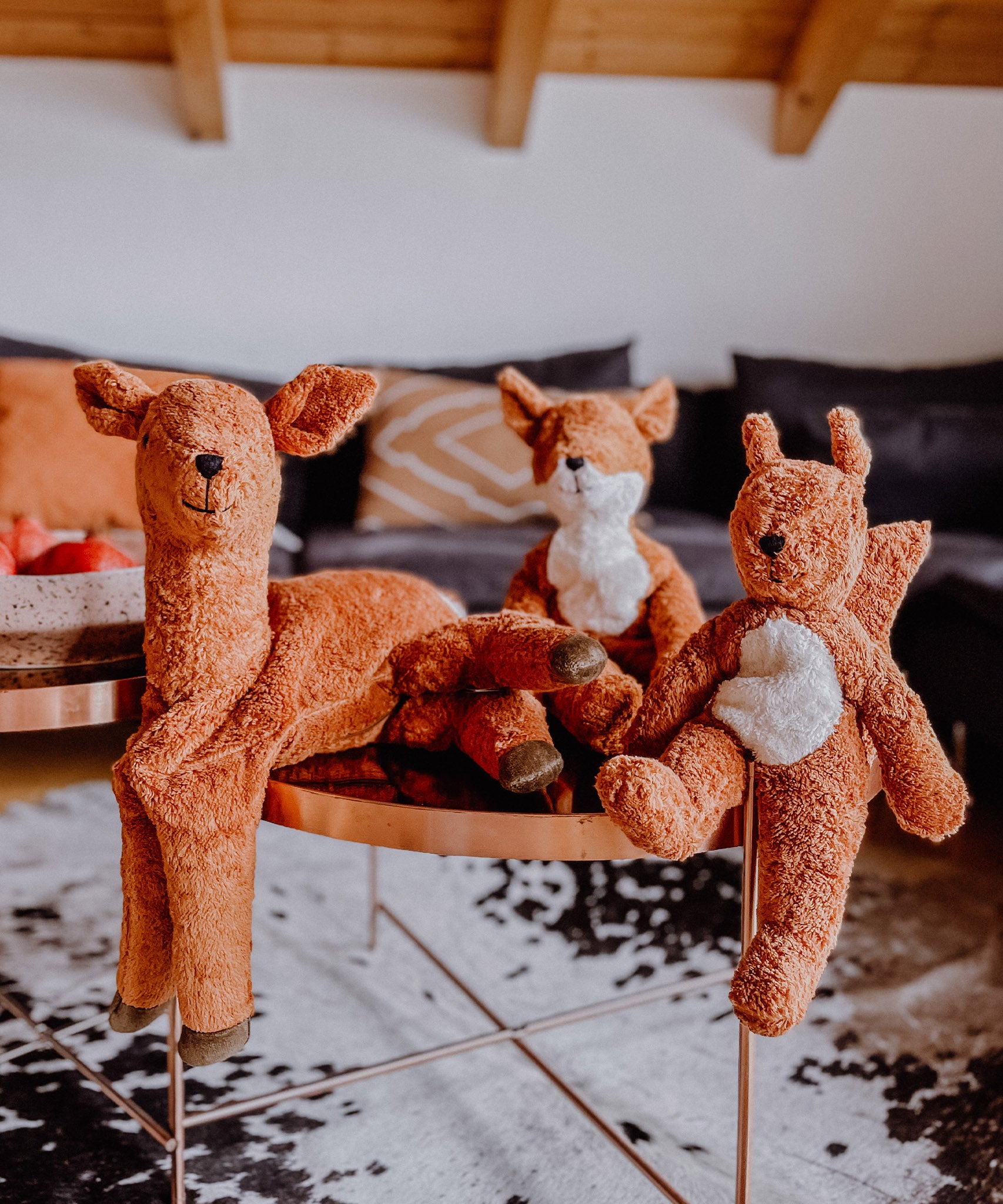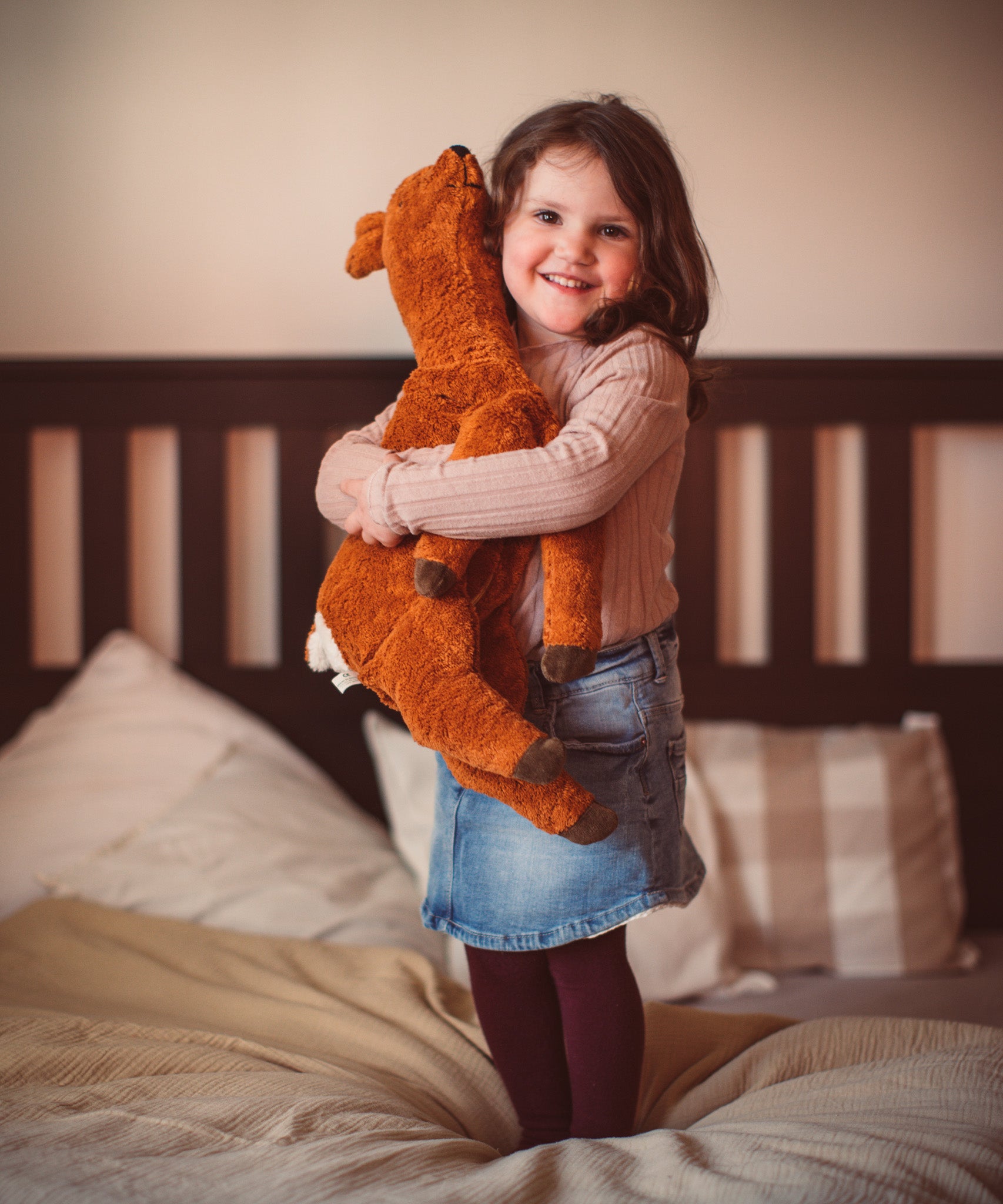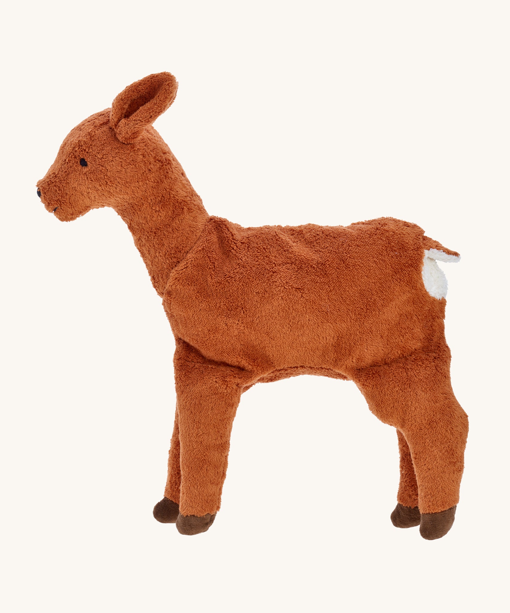 The perfect huggable bedtime companion and playtime friend for little children. With soft and strokable plush fur, long legs and sweet embroidered facial details, this large vintage-style deer stuffed toy will become a cherished companion through childhood. The removable heat cushion can be gently heated and returned to the soft toy, making a comforting and warming pillow for cuddling on the sofa. Unlike the cherry stone heat cushion, spelt chaff should NOT be heated in the microwave.
