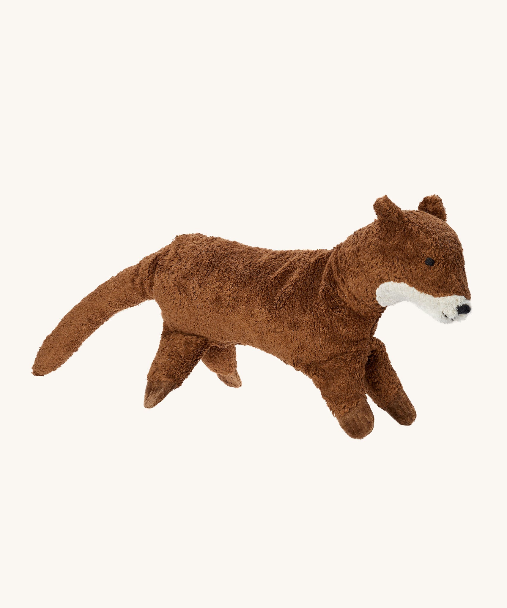 The perfect huggable bedtime companion and playtime friend for little children. With soft and strokable plush brown fur, white belly, long tail and sweet embroidered facial details, this large vintage-style otter stuffed toy will become a cherished companion through childhood. The removable heat cushion can be gently heated and returned to the soft toy, making a comforting and warming pillow for cuddling on the sofa. Unlike the cherry stone heat cushion, spelt chaff should NOT be heated in the microwave.