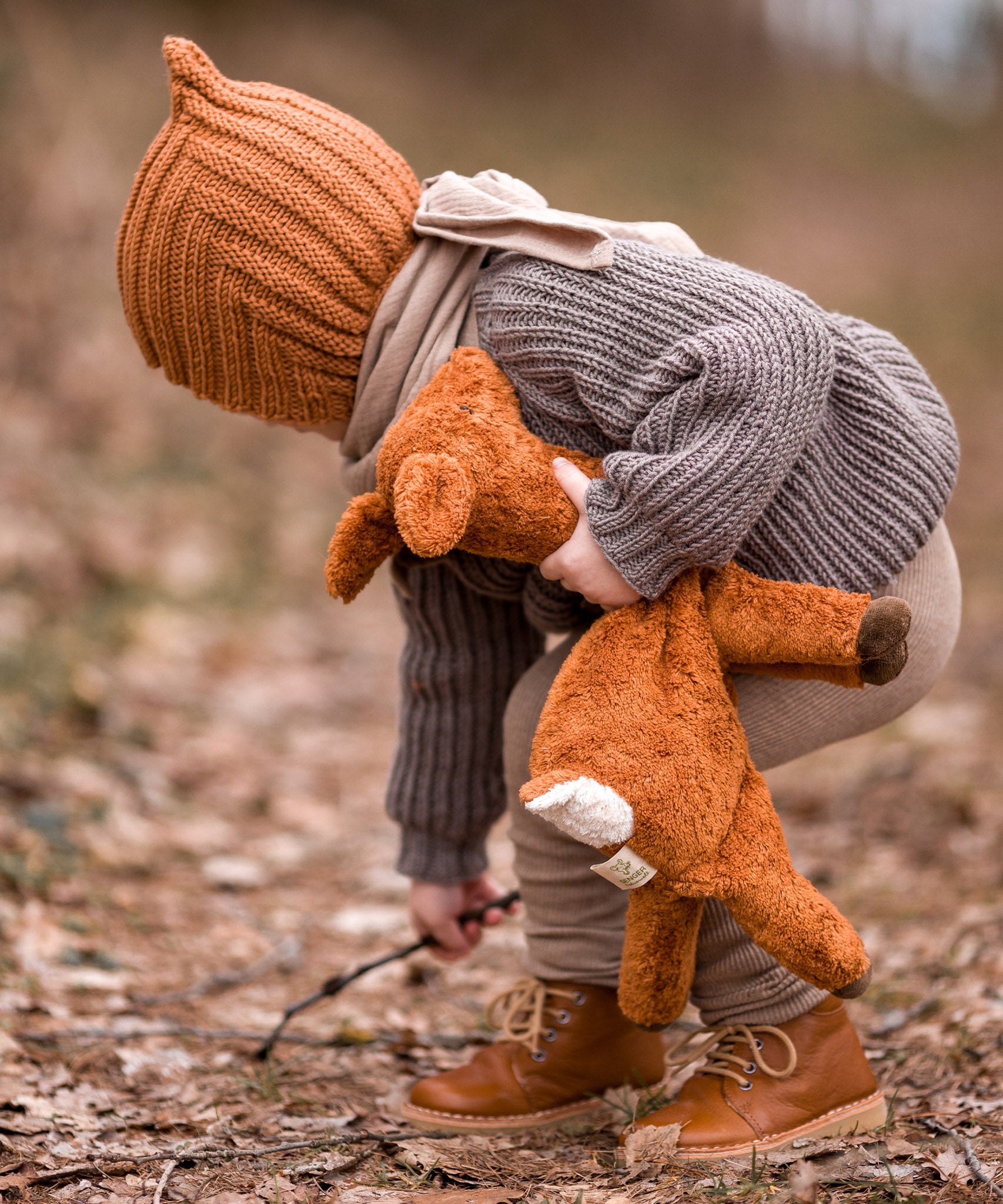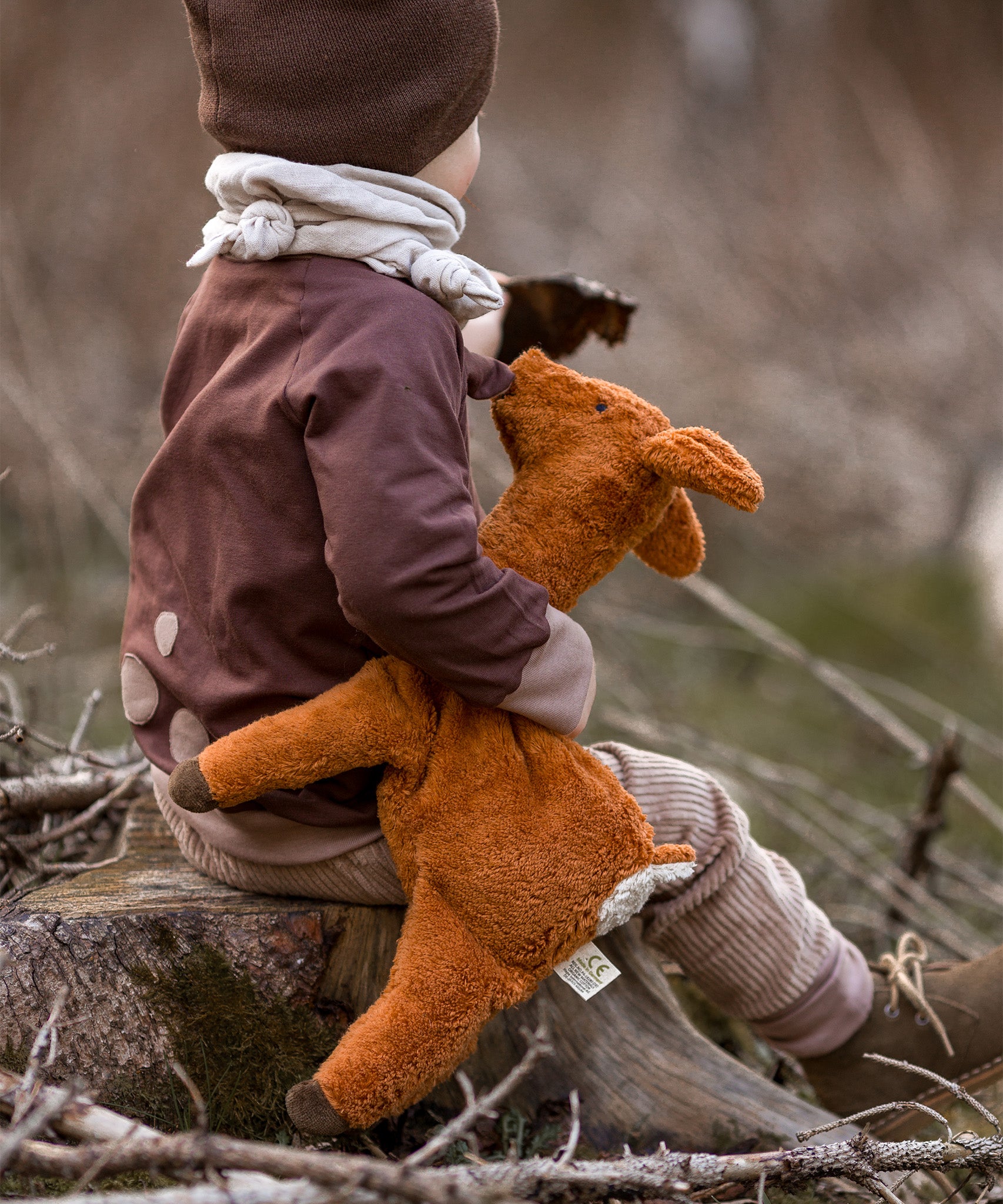 Made from GOTS organic cotton with an organic cotton filling, the Senger Small Cuddly Deer is soft and snuggly with strokable plush red-brown fur and a removable heat cushion filled with natural cherry stones.