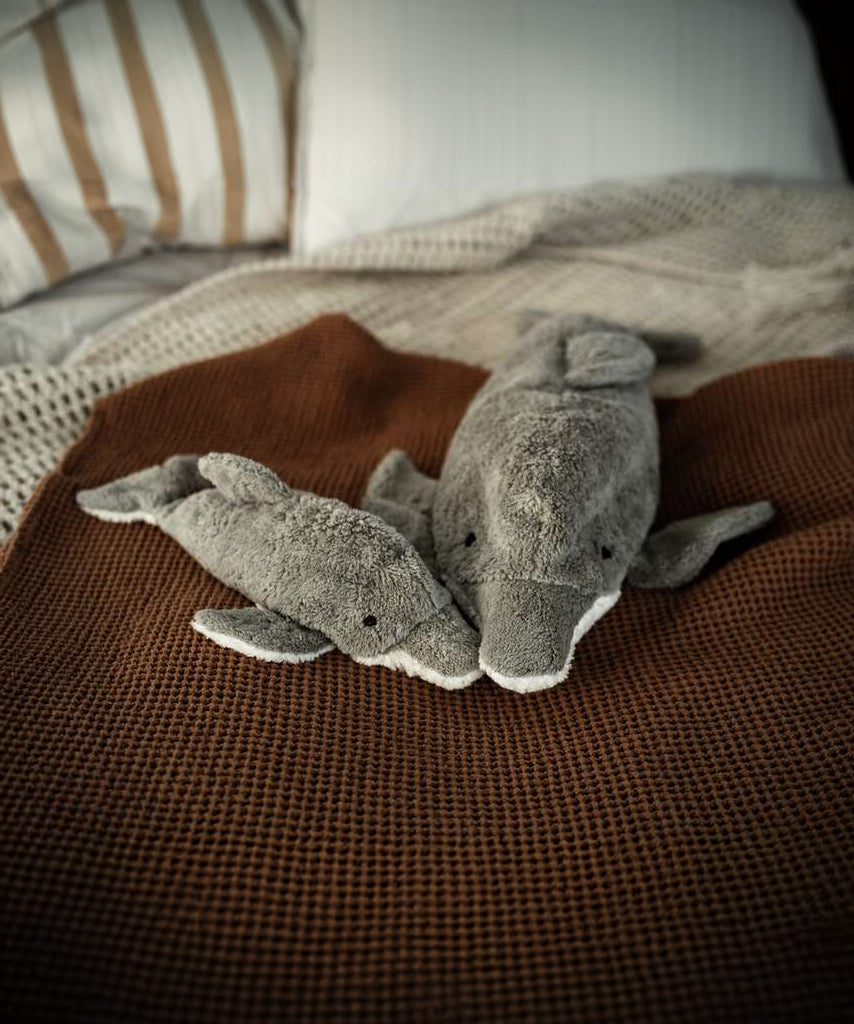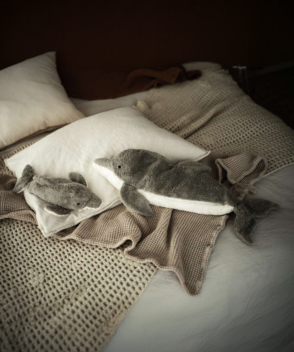 Senger Small Cuddly Dolphin Organic Soft Toy, on a cream background