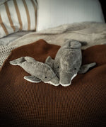 Made from GOTS organic cotton with an organic cotton filling, the Senger Small Cuddly Dolphon is soft and snuggly with strokable plush light grey fur and a removable heat cushion filled with natural cherry stones.
