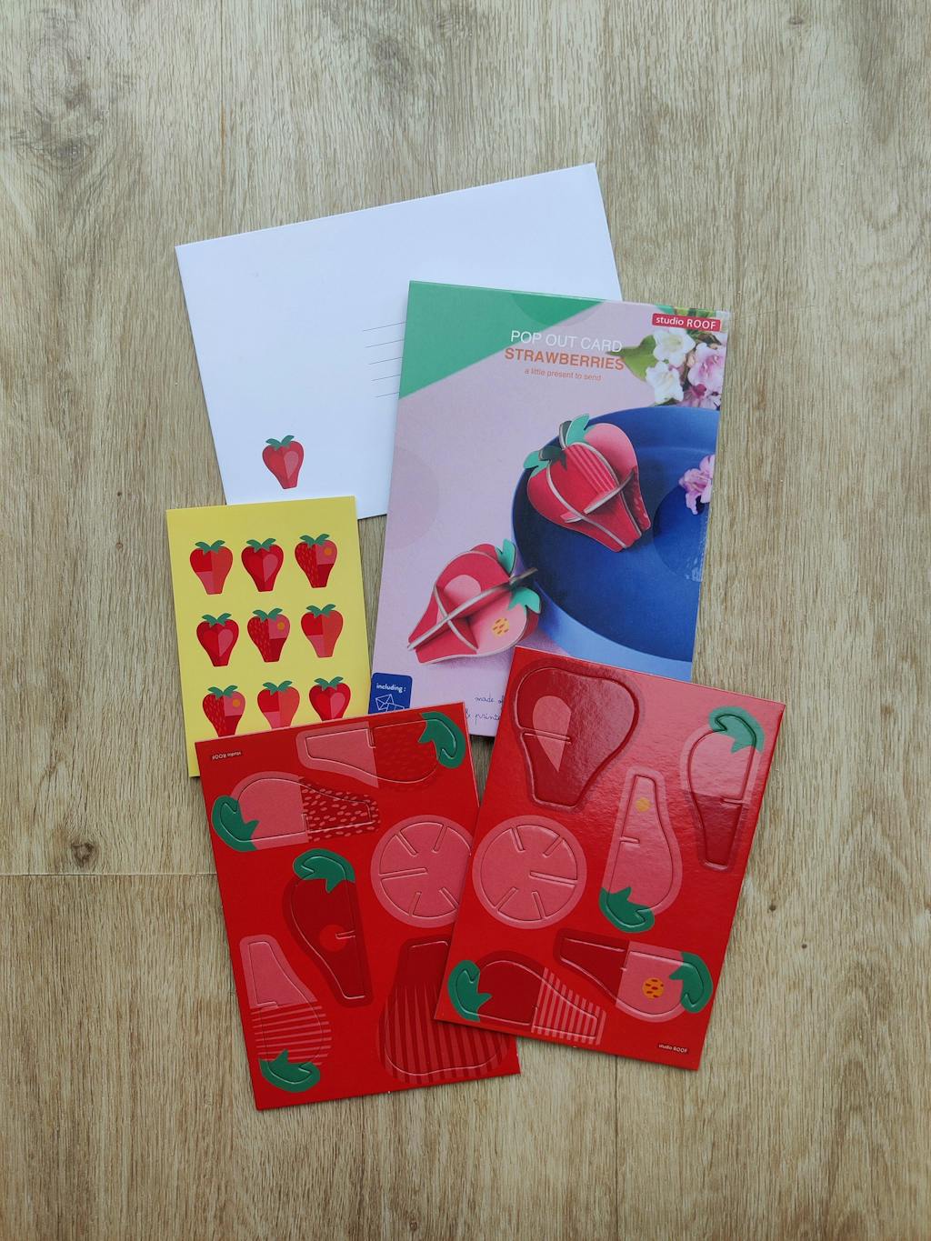 Studio Roof 3D Pop Out Card Strawberries. This 3D pop out card DIY kit is part of Studio Roof's fruits collection which is available at Babipur.