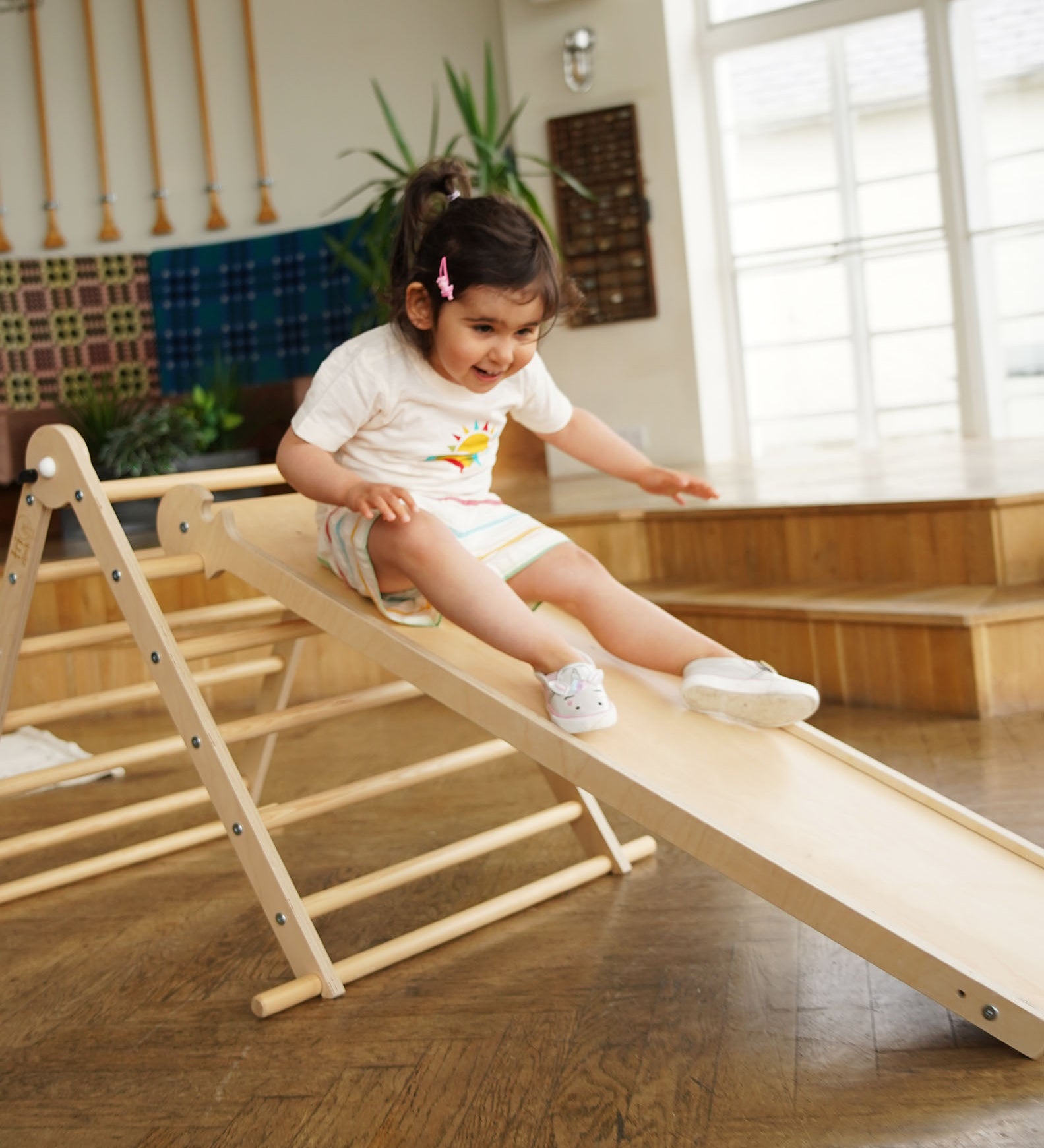 Babies and children love to move! Encourage learning through movement with our range of activity toys for all stages of development. Sustainably made wooden ride-on toys, classic folding pikler inspired climbing triangles by Triclimb, and wooden rocker boards invite movement and learning through play..
