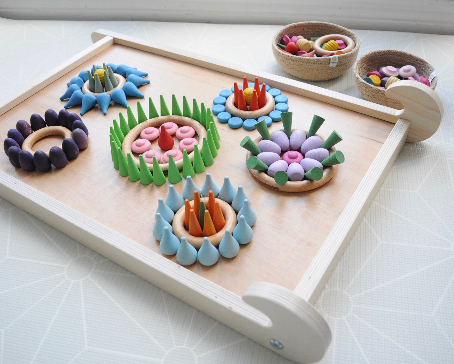 You can also lay it on the floor and use the wooden reverse side of it as a play tray for building small world scenes, or spinning spinning tops on!