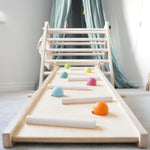Miri as a Climbing Wall: Flip Miri over to the side with the holes facing up. These holes are designed to help children learn to grip, balance, and climb using their fingers, hands, and toes. The size and spacing have been carefully planned to support natural movement and build strength, coordination, and confidence.