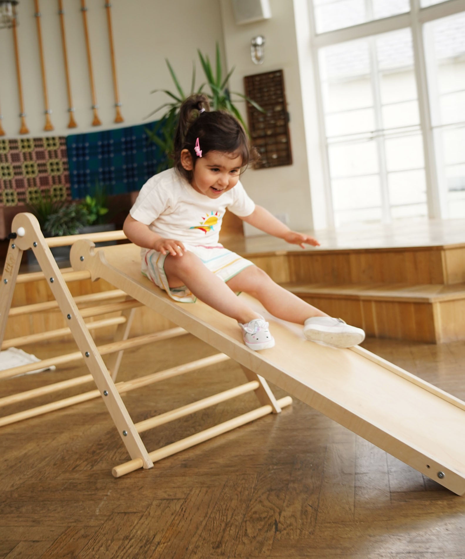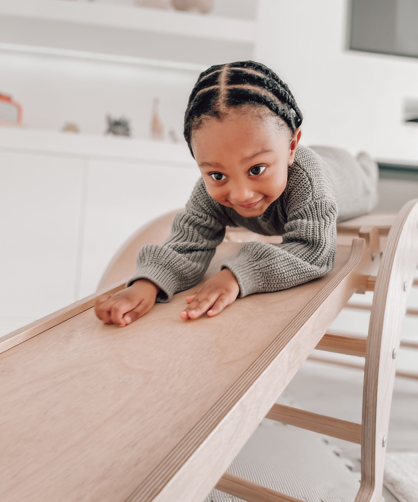 Miri is the first Pikler-style slide to attach securely, pass full safety testing, and work properly as both a slide and climbing wall. Every detail is carefully developed to ensure perfect compatibility, stability, and ease of use.