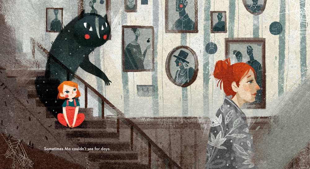 Molly see it as beautiful pages of enchanting illustrations and she pointed out things on the page. She said when the page was really black “it’s fine, she can just turn on the light and be happy again” Molly is almost three and has a good understanding of most things, except emotions. She is figuring all them out at the moment and expressing how to get feelings or points across, so this book could be quite helpful to her when she is older.