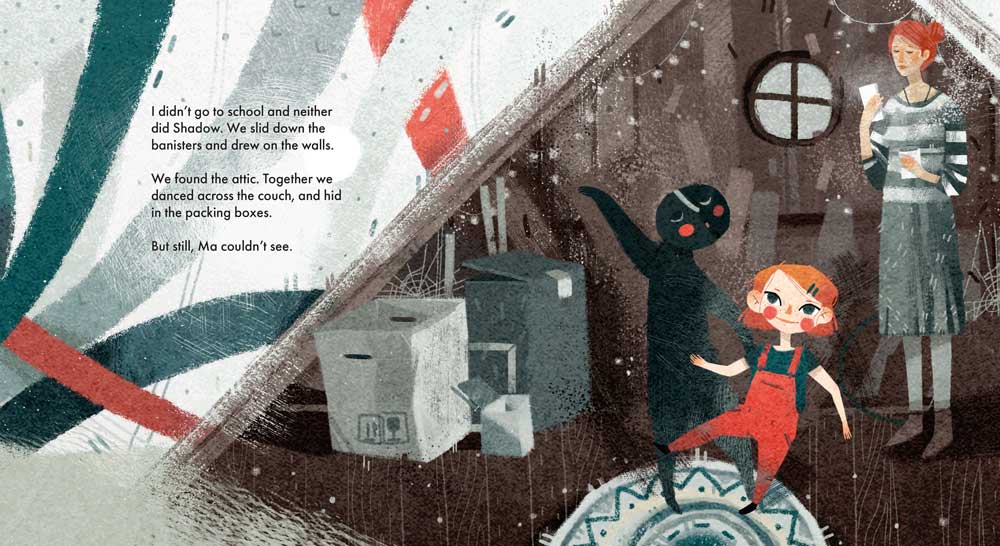 I have to say though I think it was my 9 year old that enjoyed this book the most and he has read it by himself quite a few times. He likes the idea of her shadow being her friend and helping her through the more difficult times. I think this book really opens up the reality that not all children have it as good as they do, that there are many who have to cope with loneliness and the coping mechanism used in this book is a great way of showing it's ok and there is light at the end of the tunnel.