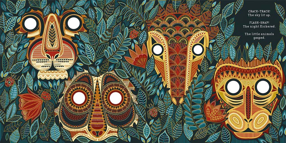 The illustration style is delightful, with lots to spot. My daughter enjoyed finding and counting the insects. Her favourite page shows the wide eyed babies looking at the lightning and she said their faces look so shocked!