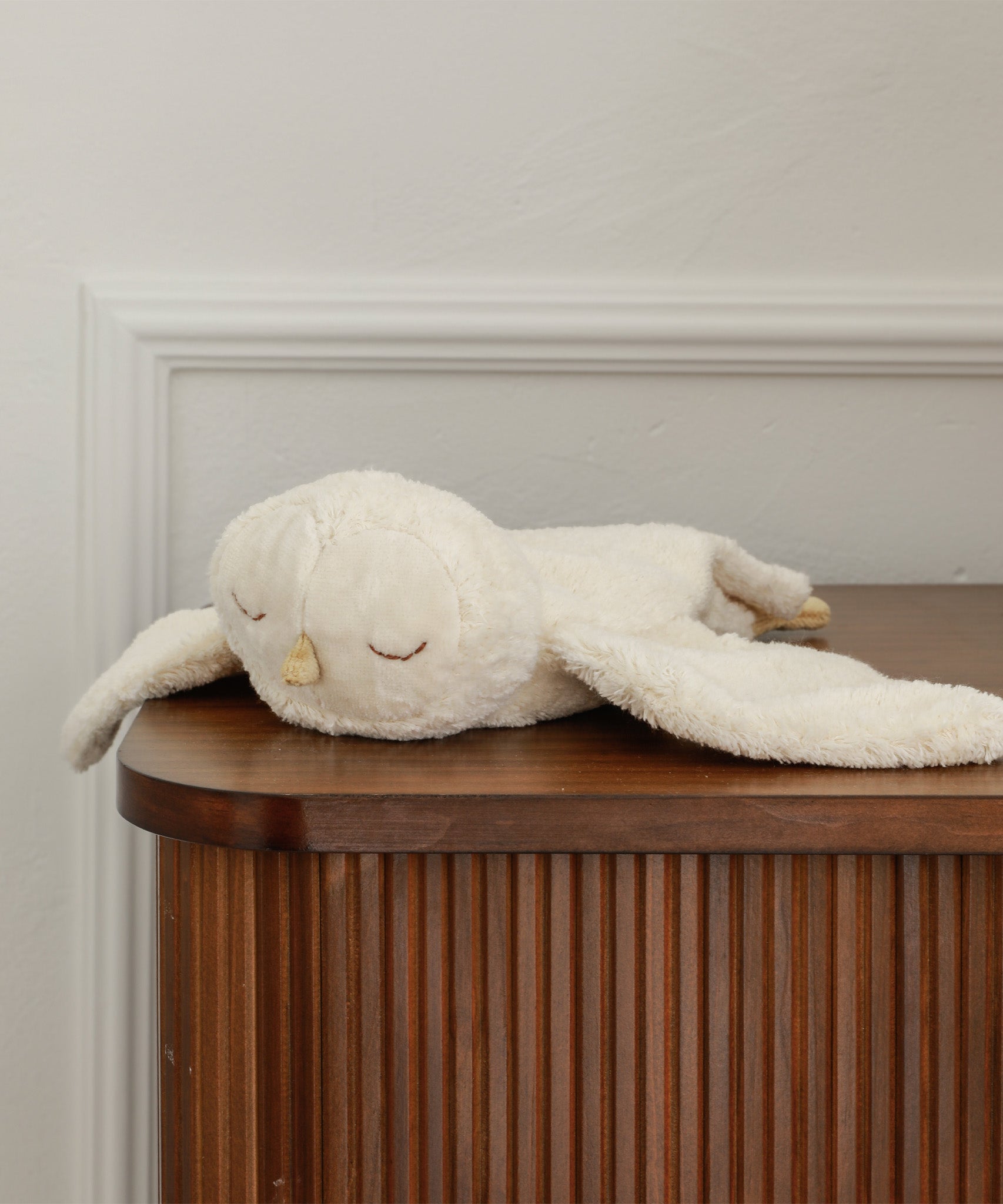A snowy owl soft toy by Senger available at Babipur. A small and cuddly soft toy with a removable heat cushion inside filled with natural cherry stones. Made from GOTS organic cotton plush with organic cotton filling