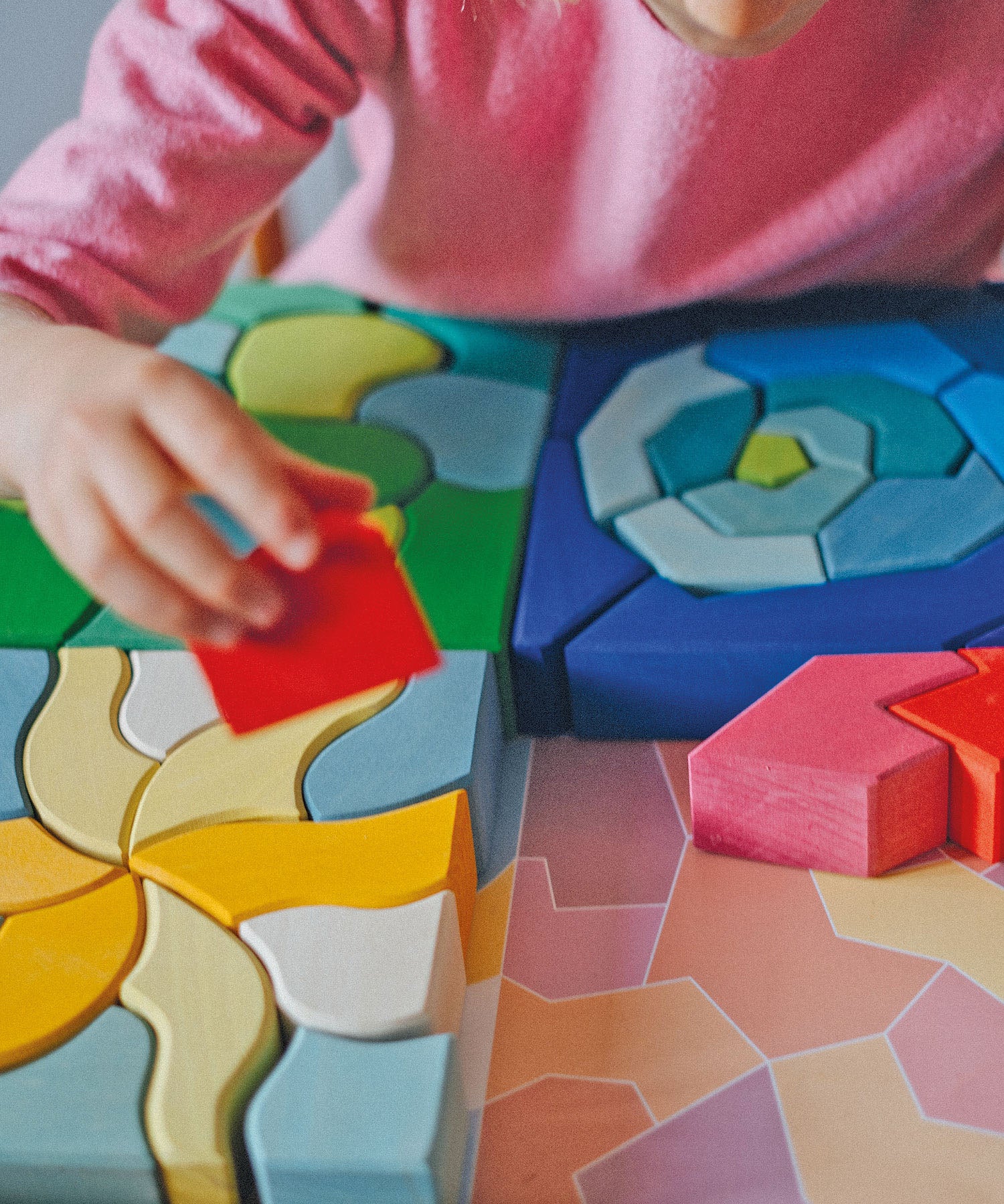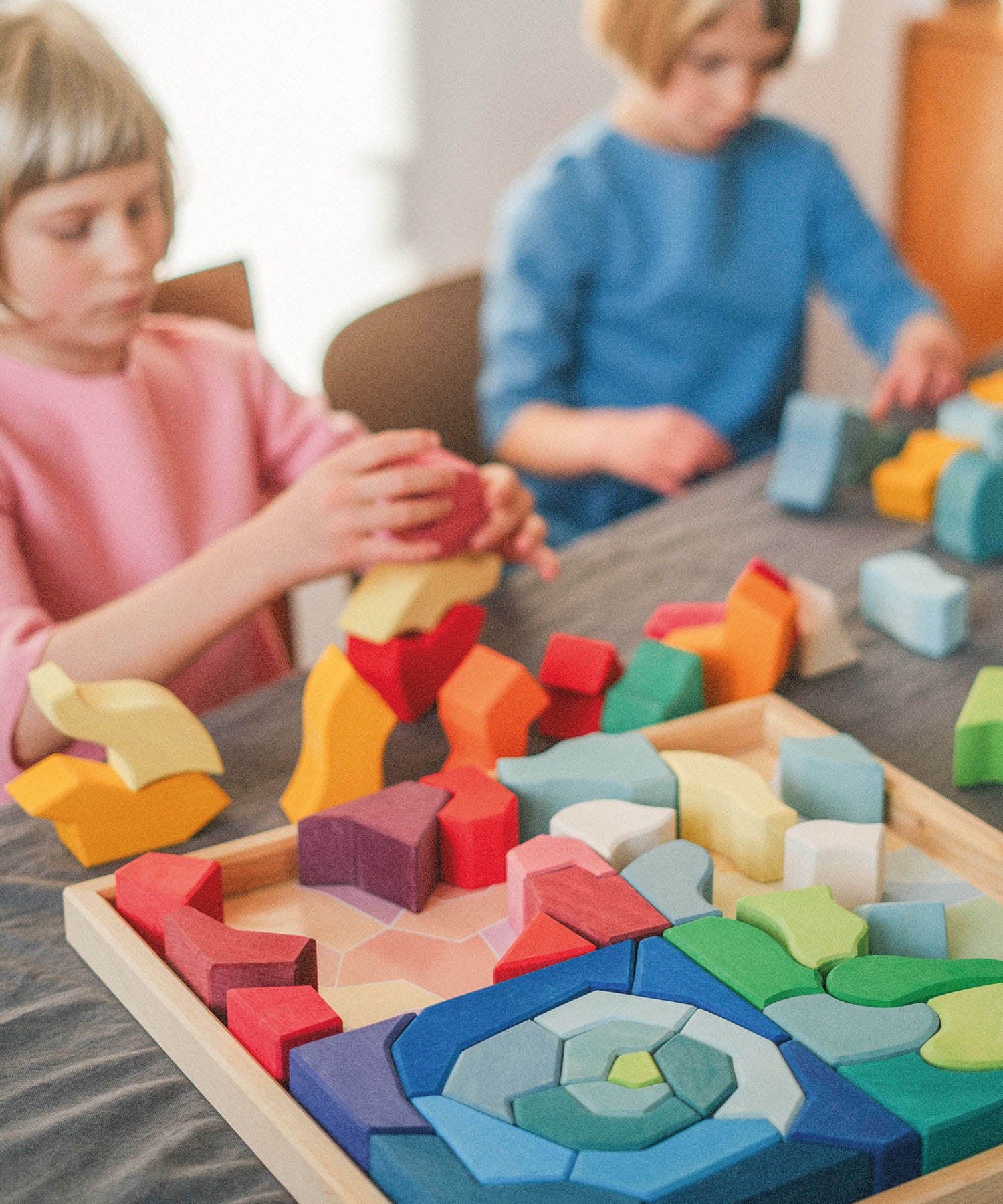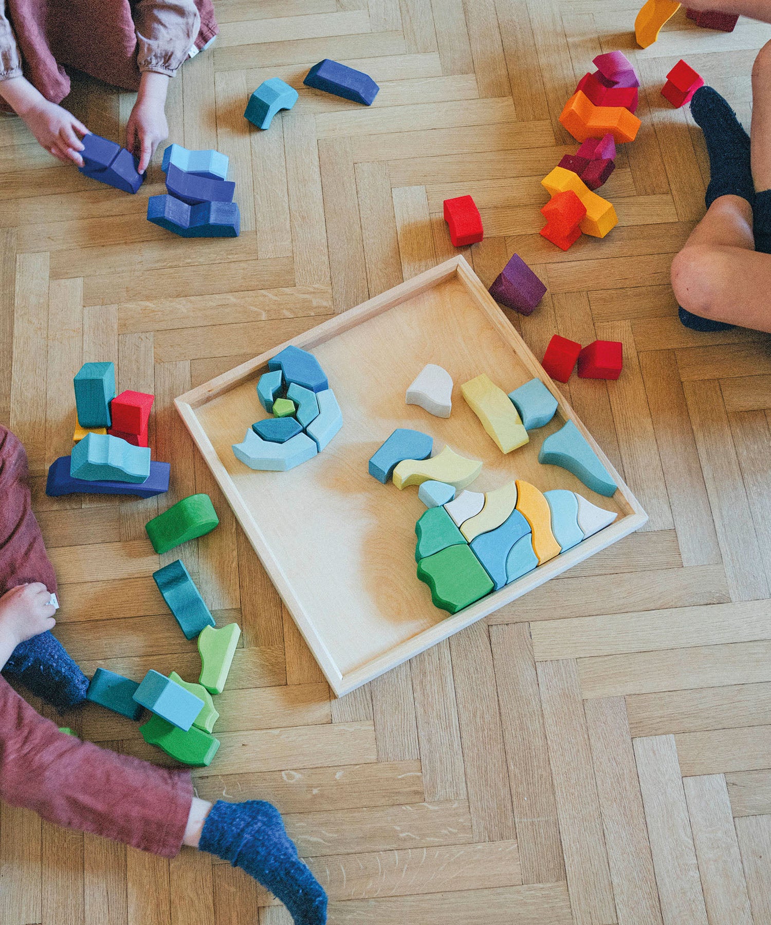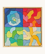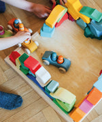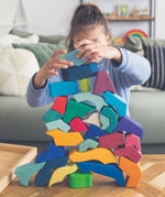 A large wooden block set bringing together the four temperaments using the language of form and colour. The Grimm’s Four Temperaments Building Set is a made up of 61 colourful free form pieces. This large eco puzzle set is a fantastical depiction of the four temperaments recognised in Waldorf education: Sanguine, Choleric, Phlegmatic and Melancholic.