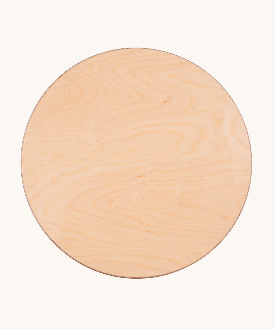 A large 38cm diameter engineered wooden platform. Designed for construction and creative play.