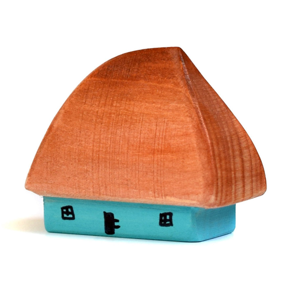 The Bumbu Crisana House Pictata is an eco-friendly, miniature wooden house toy with turquoise walls and a brown roof. This small house is perfect for creating scenes and open ended play.