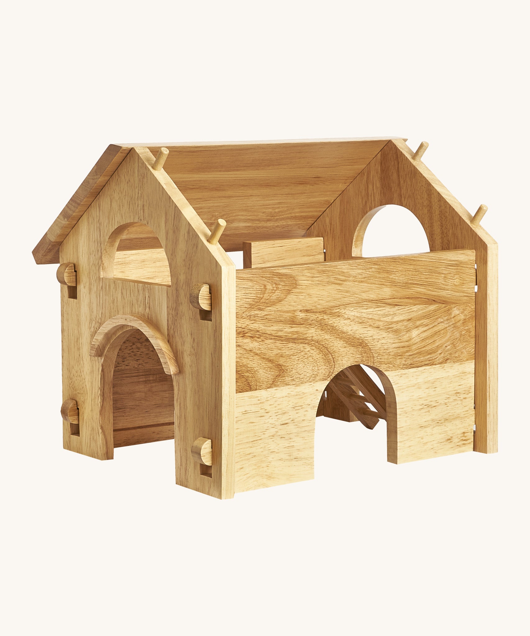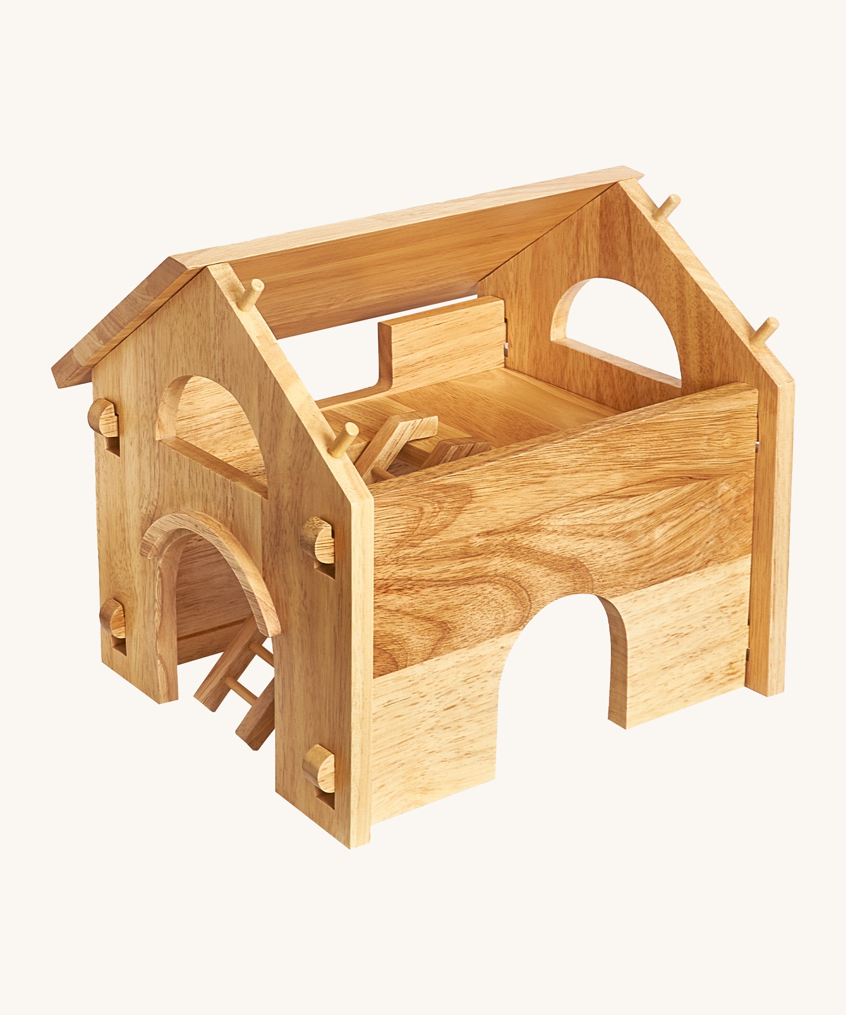 This Lanka Kade Deluxe Natural Barn is a large wooden farm building, ethically handcrafted from sustainable rubber wood. With open windows and doors, as well as removable roof panels, children can access each side of this wooden toy farm building. It comes with a detachable ladder to reach a high floor and there's plenty of space to house a child's toy animals. Young farmers will love to use this wooden building as a stables, cow shed and hay barn, splitting animals between the ground level and the loft. With a little imagination, this barn can become pretty much anything - a school, dolls' house, hospital, fire station or shop.