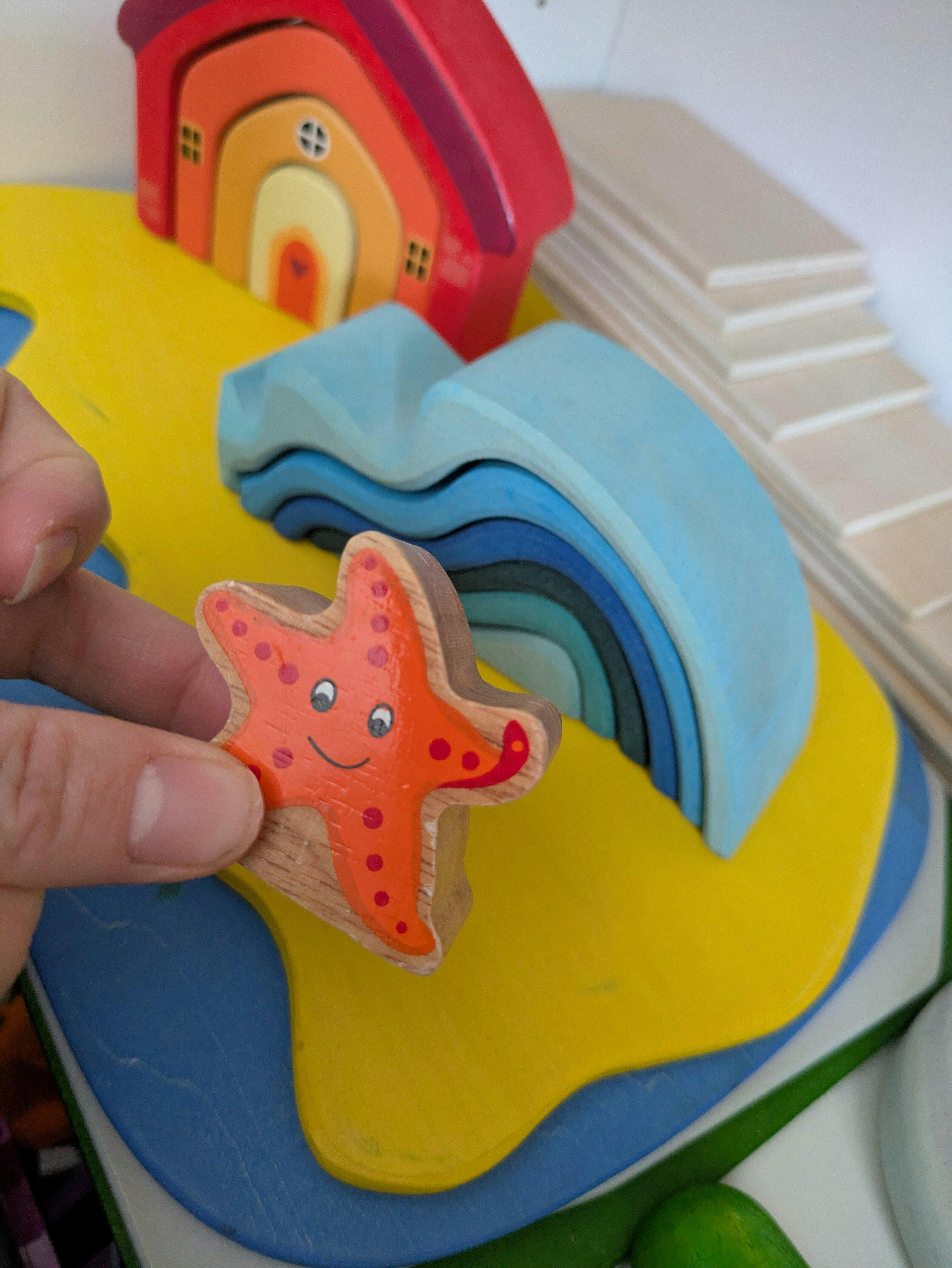 This Lanka Kade Starfish is painted in bright shades of orange with black and white paint used to add details and a friendly face. This natural wooden toy figure has unpainted sides to show off the beautiful wooden grain. Perfect for story sacks, small world play and more, this natural wooden Starfish would make a great addition to any ocean play set. Team up with other Lanka Kade figures to create a fun and bright aquatic play set that'll entertain your little one for hours.