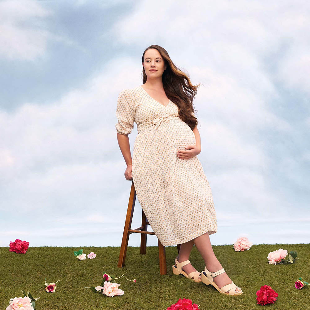 With mid-length billowy sleeves and a cross over top, this wrap dress is a wonderful addition to your summer wardrobe. Easy to wear, this is the perfect dress for a day at the beach, work, simply pottering around the house, or dress up for the evening. The mid-calf length dress looks fabulous teamed up with tights and a cardigan on cooler days and can be tied at the top of a growing baby bump, making it suitable for maternity, breastfeeding and beyond. Sustainably made from 100% GOTS organic cotton Olli Ella dresses will take you through season to season in style and comfort.
