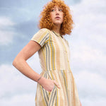 Effortlessly sophisticated, the Soolip Horizon Stripe Organic Cotton Dress by Olli Ella is a cream organic cotton shirt dress for adults with plaid stripes in summery hues.