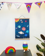 This art print is a wonderful way to encourage curiosity about the planets and space. The basic principle of our solar system is presented in a way that’s easily digested by young children and will spark conversations and discovery.