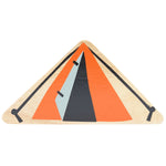 This small wooden tent has a hand painted design on both sides, with an open door on the front and a solid orange panel on the back. Cut from a single piece of eco-friendly wood, this toy is very easy to stand up and position. It works well in any toy collection and is perfect for storytelling and imaginative play. Maybe your toys are climbing up a mountain or taking a little camping trip in the woods!