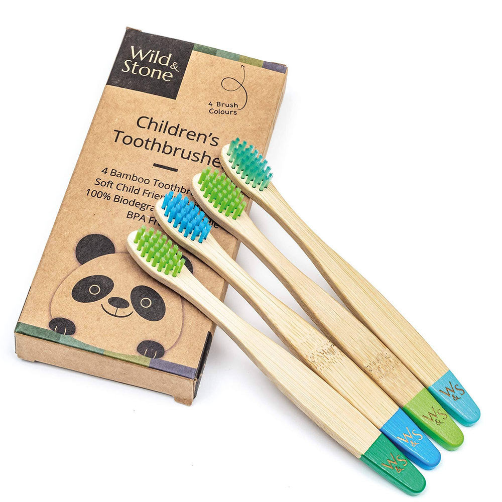 Wild & Stone Children's Bamboo Toothbrush - 4 Pack - Aqua