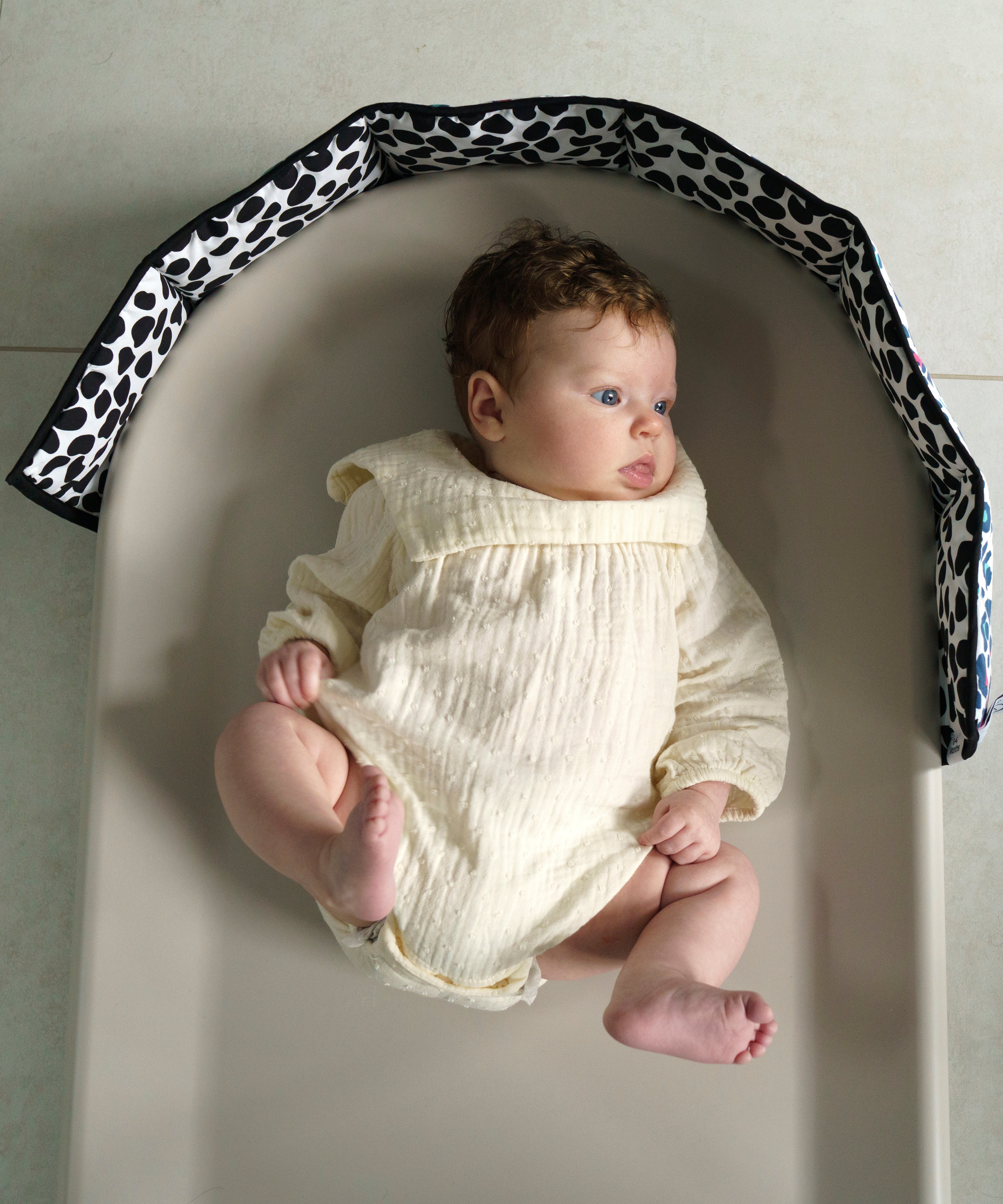Babies love staring at the high contrast print, offering visual stimulation for them, and a moment of calm for you.