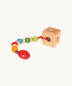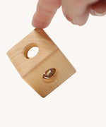 This toy is 5cm x 5cm x 5cm. Made from alder wood and finished in non-toxic, plant-based oil. Suitable from birth.