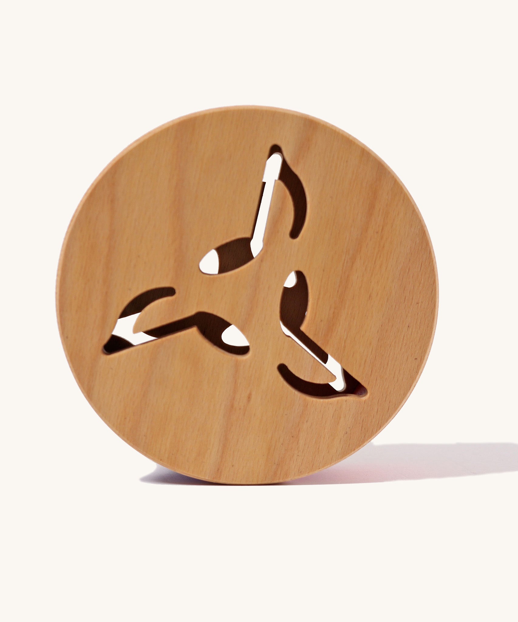 Measures 16cm in diameter. Made from lime wood and finished with non toxic water based paint and plant based oil. Suitable for 0+ months