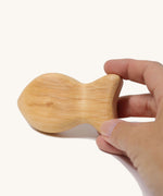 Grimm's Wooden Baby Rattle - Fish in a natural alder wood finish on a cream background