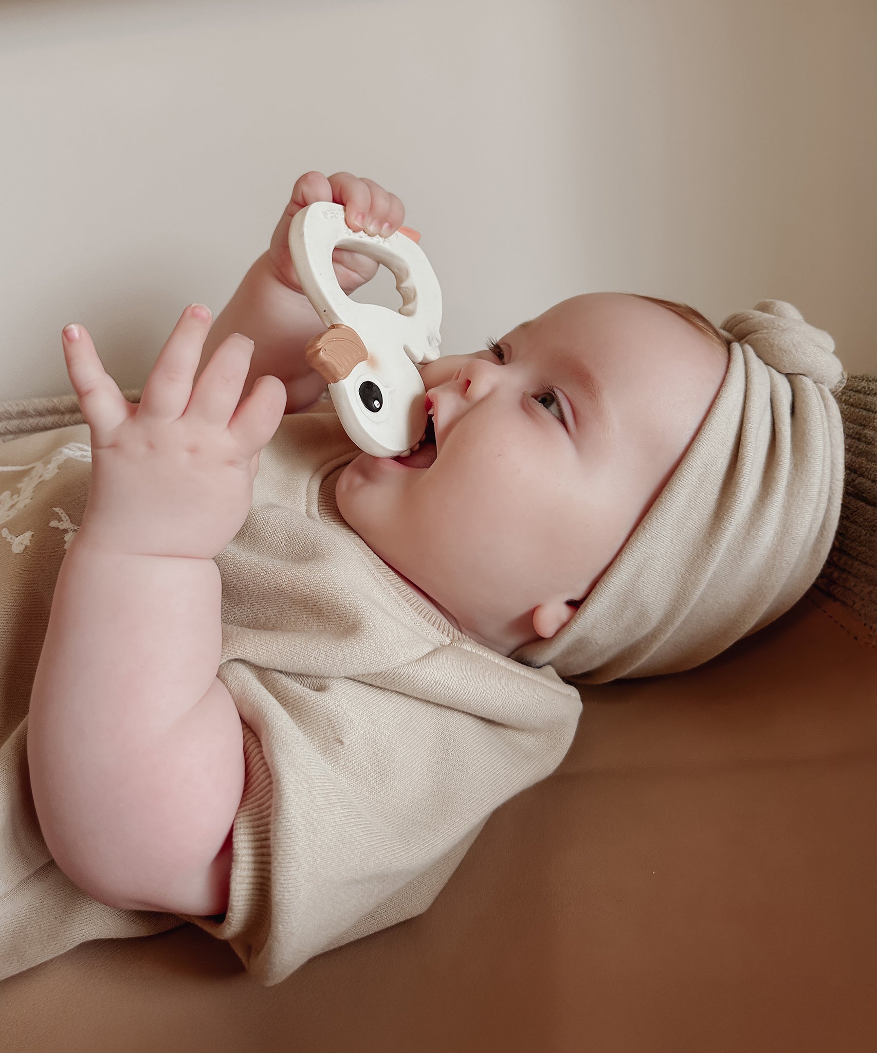This teether set is dyed with natural plant pigments, plastic-free and made from 100% naturally sourced sustainable rubber. A fantastic sensory toy to stimulate baby's senses and keep your baby occupied at home or on the go!