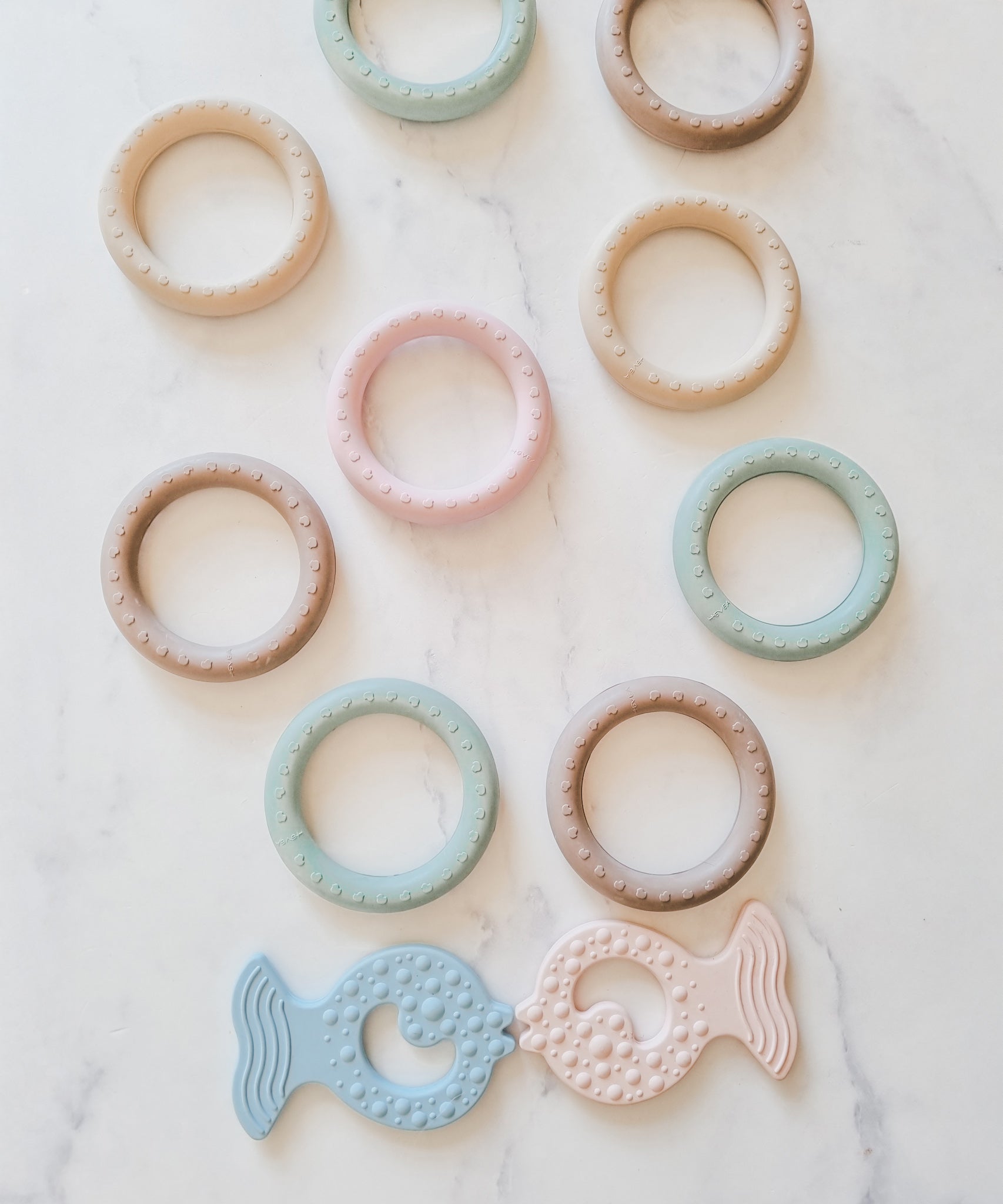 This hygienic teething toy set is lovely for sensory play, as little ones explore the textures with their hands and mouth. Lightweight and easy to grasp this teething ring can be easily attached to a pacifier chain to keep it close to hand. Pop it in your change bag to keep baby entertained while out and about. This all-in-one teething toy has no holes, so no hidden bacteria or mould can form inside or on the toy.