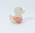 Soothe aching gums with this cute duck teether with pink wings made from natural hevea rubber. It's a great shape for tiny fingers, wonderfully tactile and ideal for attaching to car seats, bouncers and baby carriers for teething on the go. This eco teether is eye-catching and soft to the touch.