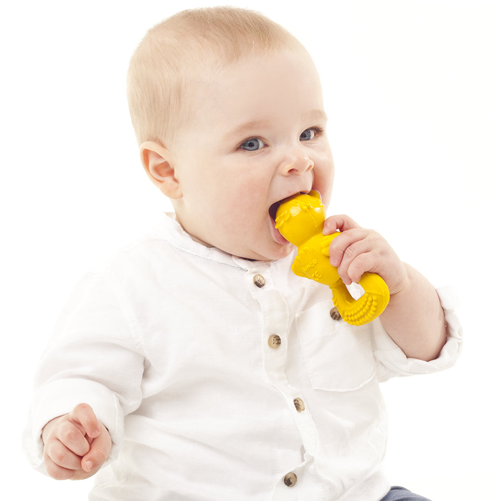 This duck is so cute, soft and squidgy, textured but also very durable for chewing on. It's light and good for little hands to grip onto. It gets lots of smiles.
