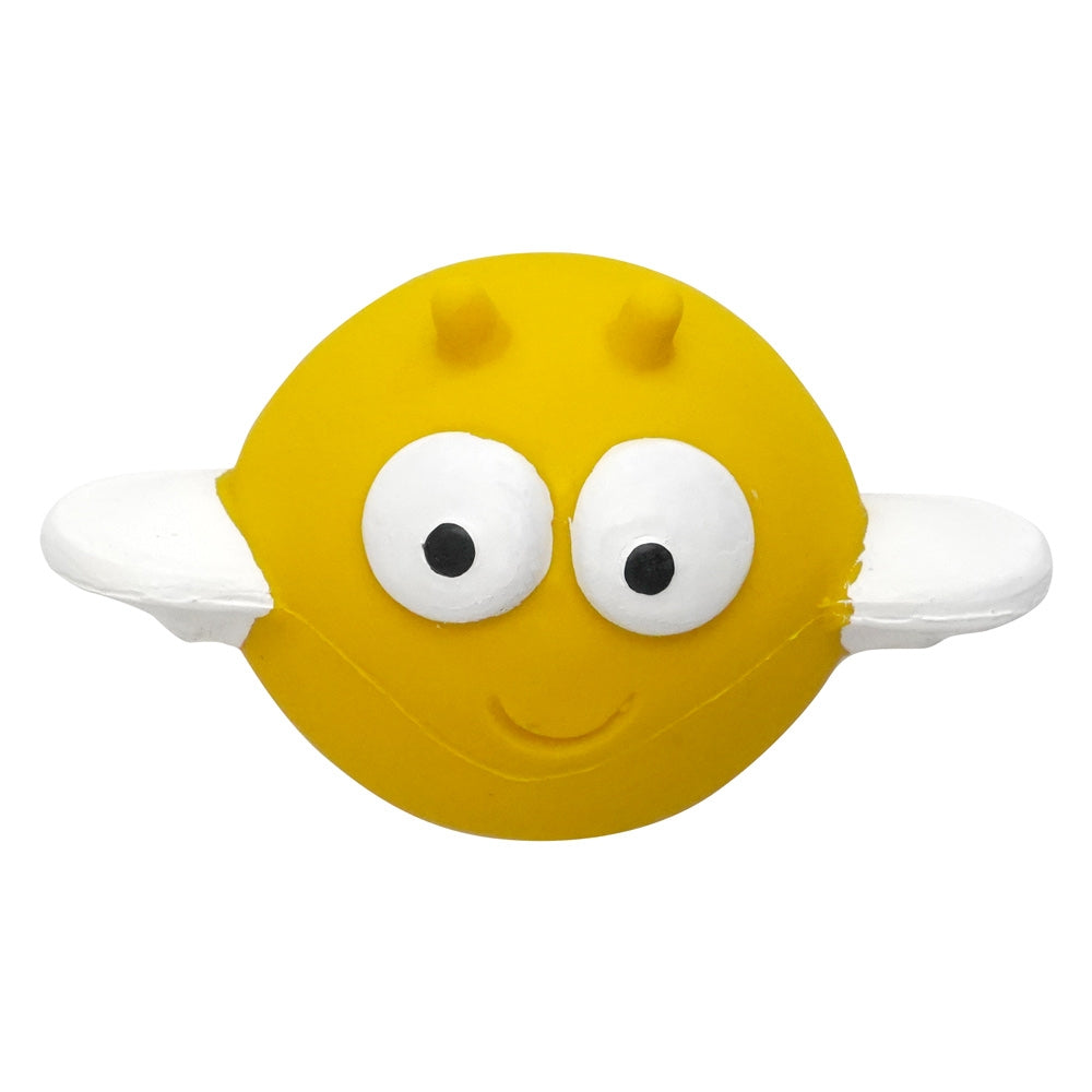 A bee shaped baby ball made from 100% natural rubber from the Hevea tree and hand painted with non-toxic food grade dyes. Designed to encourage your little one to discover their senses and help sooth teething gums, the bee ball has a happy face and bold black rings on the back and protruding antenna and wings to grasp on to. It is lightweight and small enough for little babies to handle. This would make a lovely natural new-born baby gift, and a great first ball for babies.