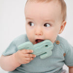 Help soother aching gums with this green cactus teether made from natural hevea rubber. This eco-friendly teether is eye-catching, soft to the touch and easy for tiny hands to handle. Handmade from 100% organic Hevea rubber and painted in food grade, non-toxic dyes - this teether is the perfect choice for stimulating the senses of teething babies.