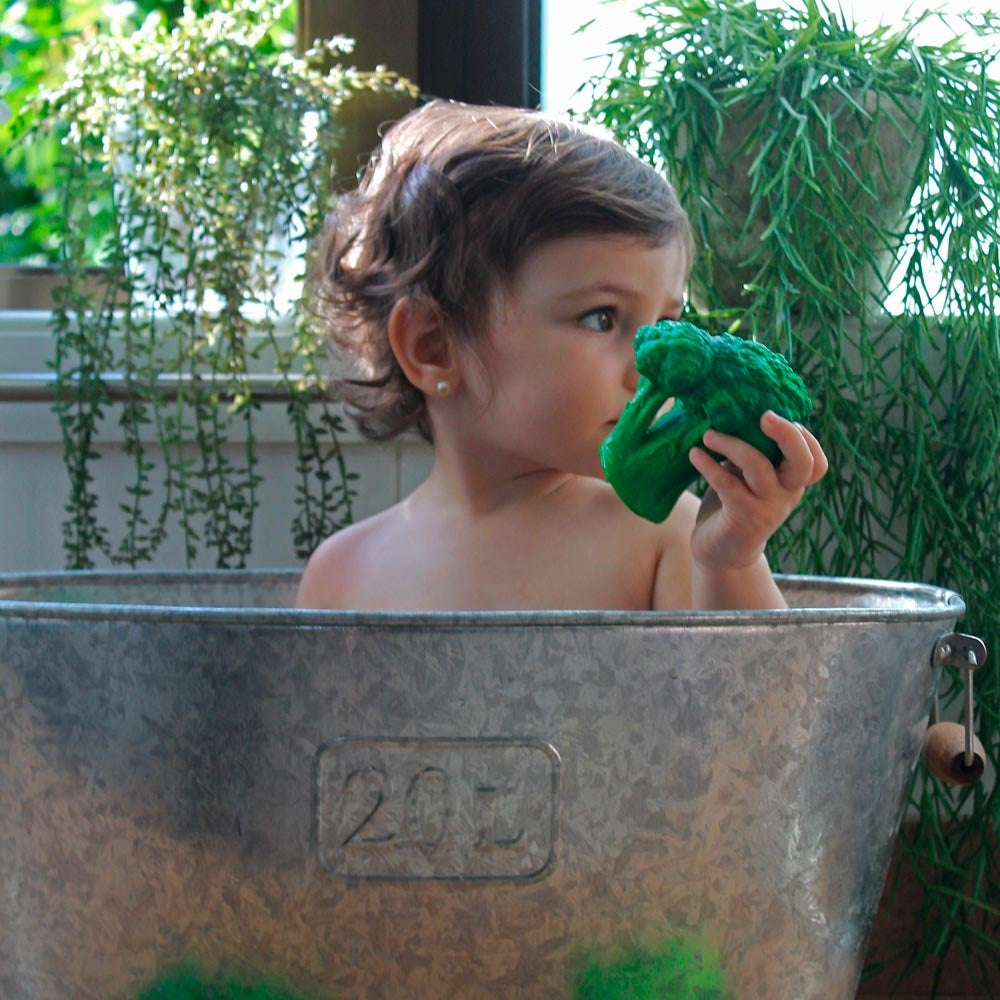 Introduce a love of fruit and veggies from an early age! Bruce the Broccoli from Oli & Carol is soft and chewable 100% natural rubber toy for teething babies, and will be loved by older children in their play kitchen and shops.