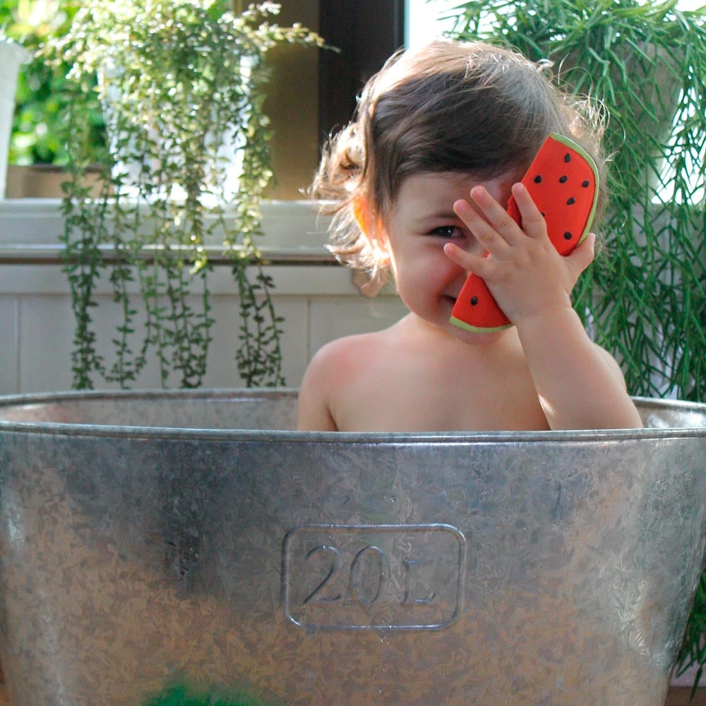 Wally the Watermelon looks good enough to eat with its juicy pink flesh and black seeds, and it looks like somebody’s already taken a bite! Your baby will love exploring the textures of the melon segment with hands and mouth, making it a great sensory experience. Stock your play shop or kitchen with these soft, hand painted 100% natural rubber toys - they can even be played with in the bath tub too. With no holes in, Oli and Carol toys are great for the bath and totally hygienic, fun and safe for kids!