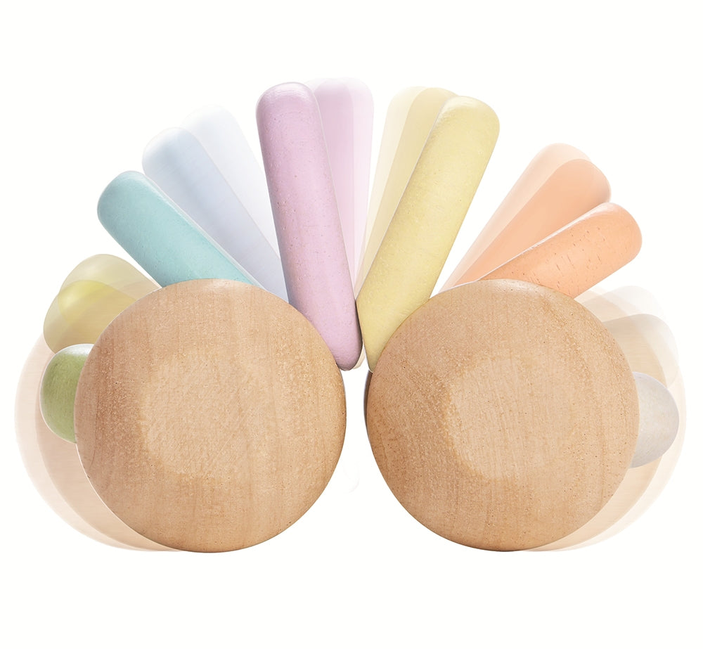 This pastel coloured and natural wood toy car is an adorable baby toy for rolling along the floor and rattling. The wheels roll smoothly along the floor and, when pushed down, the central pastel pieces make a gentle clacking sound. The charming colours and rattling sound appeal to babies' senses, and they will love to push it along. This rolling toy is safe for teething tots to chew on and is ethically made from solid, sustainable rubberwood and painted with eco colours in pastel shades. We love the new pastel colours available on this classic PlanToys wooden baby toy and think it's a perfect gift for a growing baby.