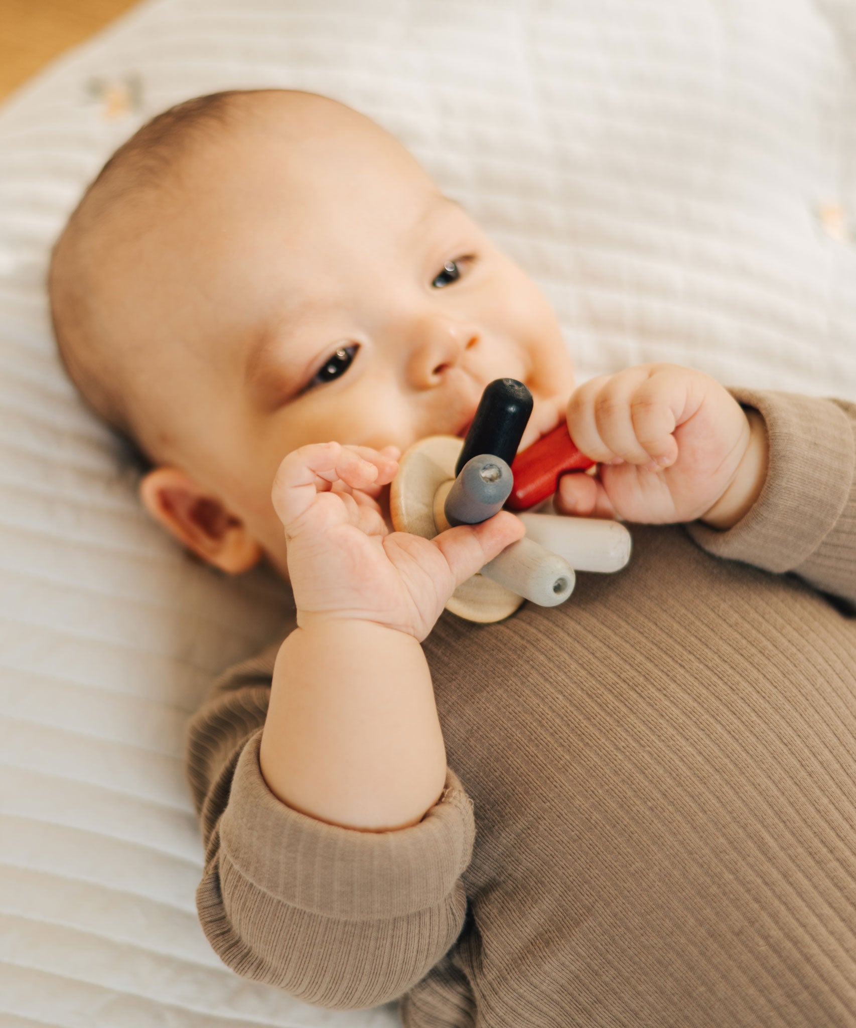 PlanToys Flexi Jellyfish – High Contrast Sensory Wooden Teether Baby Toy