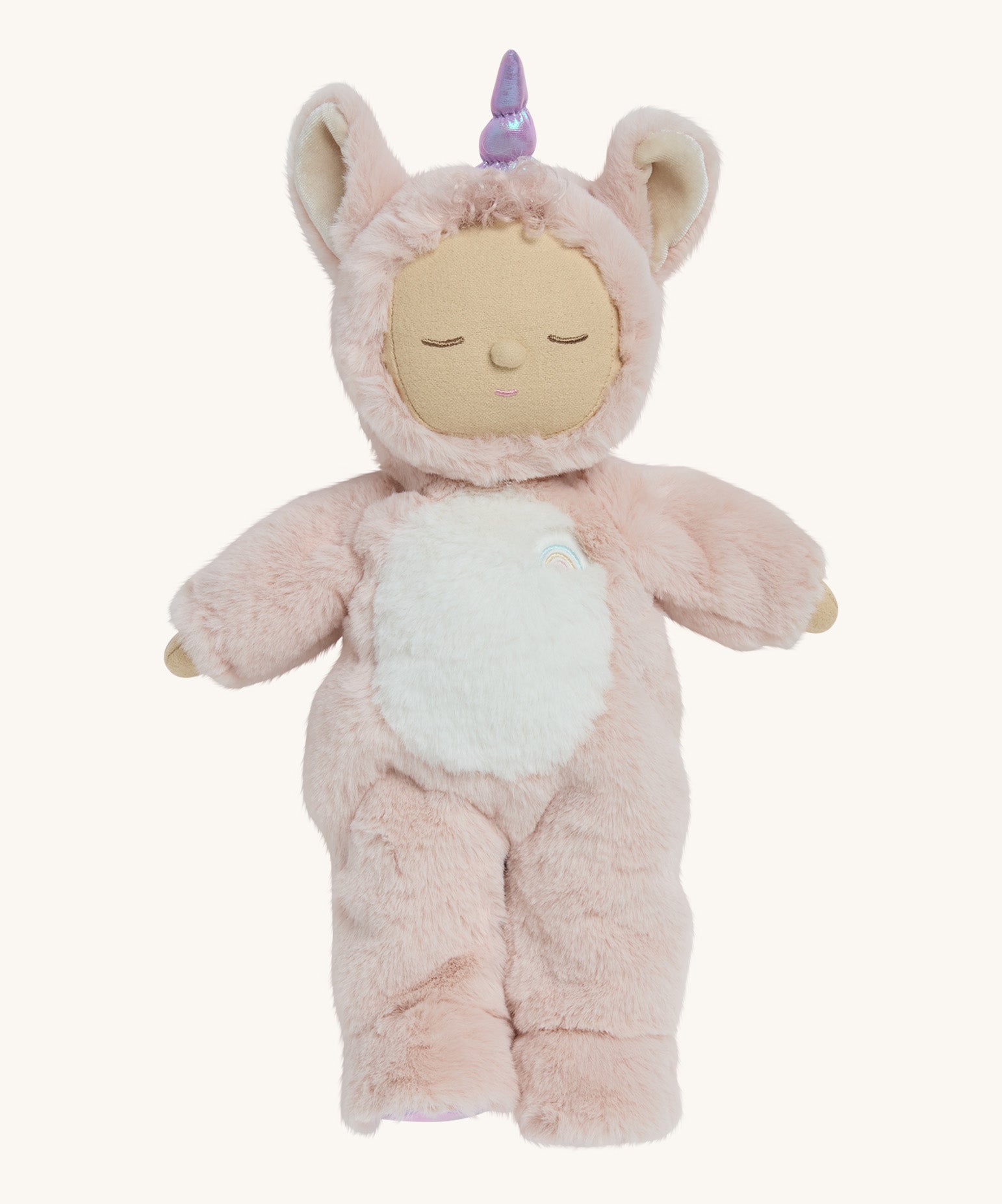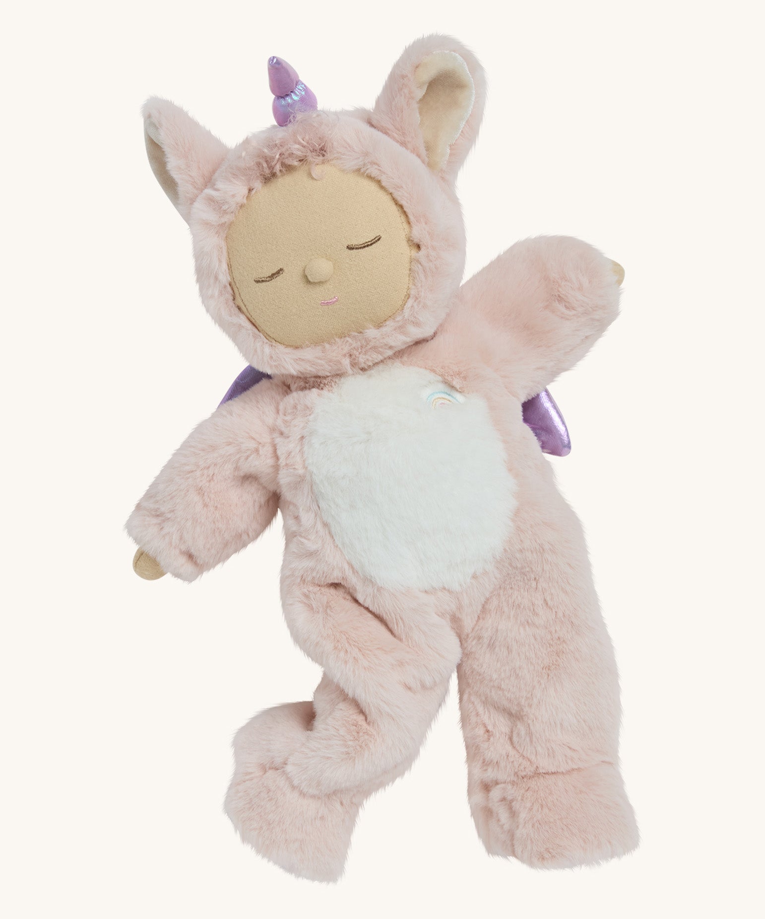 • Unicorn Sweetpea has a special Olli Ella rainbow embroidered over their heart, a sweet sleepy embroidered face and a button nose.
