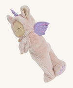 A pink fluffy unicorn Olli Ella dozy dinkum doll on a cream background