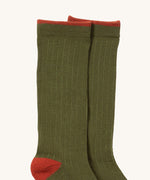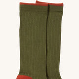 Little Green Radicals green block ankle socks from the golden leaves set. A green soft ribbed GOTS organic cotton sock with green and yellow trim