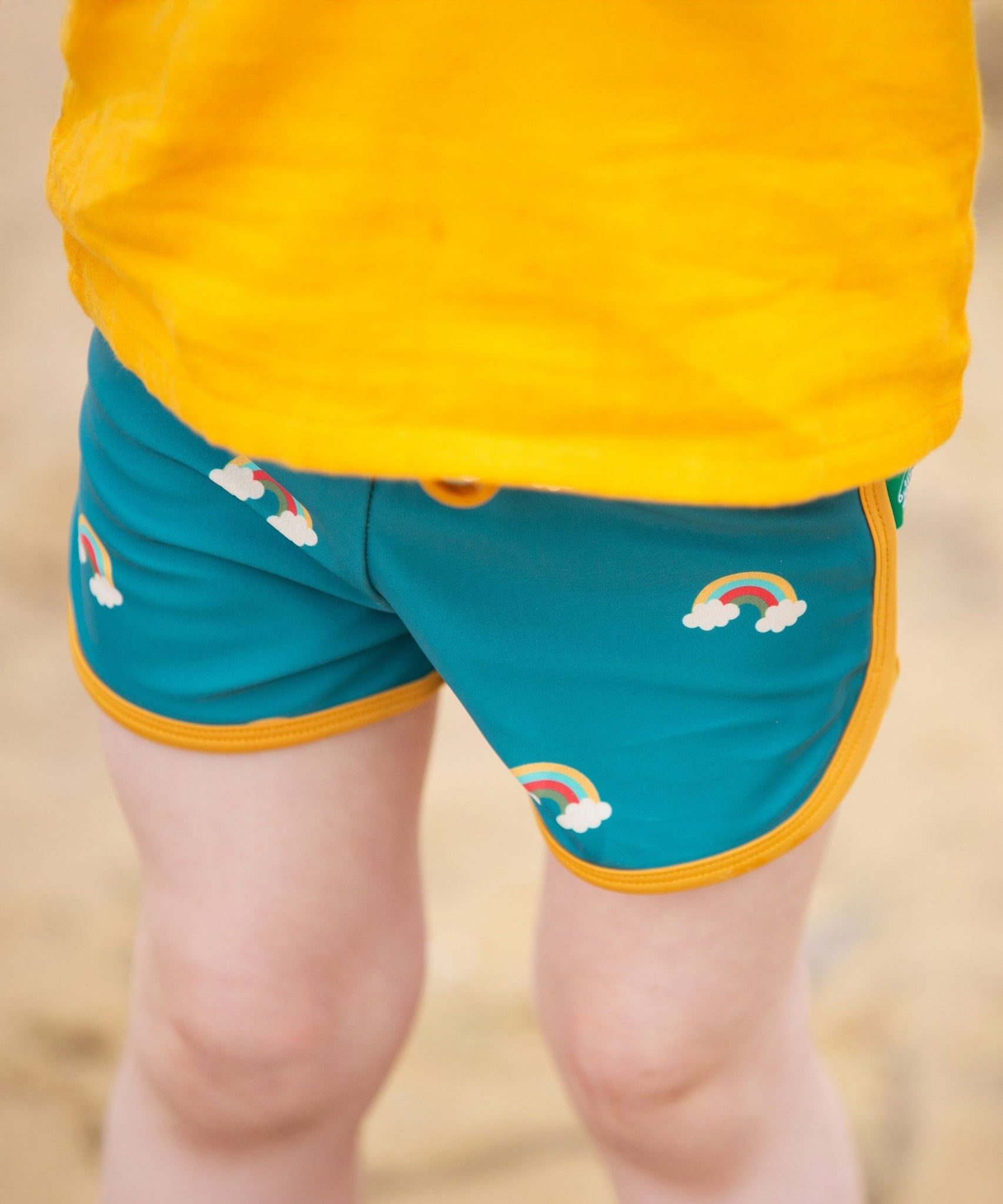 Little Green Radicals Teal Rainbows UPF 50+ Recycled Swim Shorts