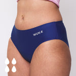 Feel comfortable and confident during your period with these Teen Stretch Seamless Period Pants in blue with heavy absorbency by WUKA® - super soft and comfortable, reusable period knickers for tweens and teens.