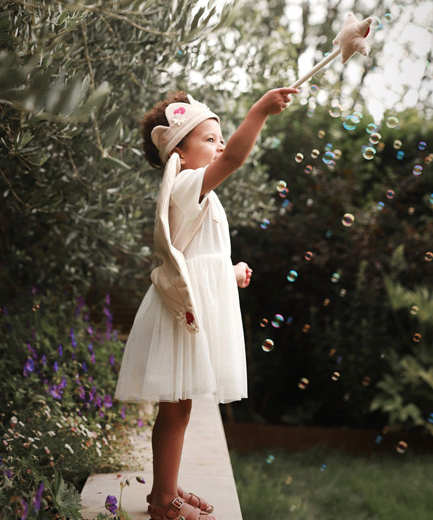 Inspire some magical imaginary play with this wonderful fairy set, little people won't be able to resist flying off on a magical adventure! It makes a gorgeous organic dress-up outfit for toddlers and children for a fancy-dress party or some whimsical make-believe fun.